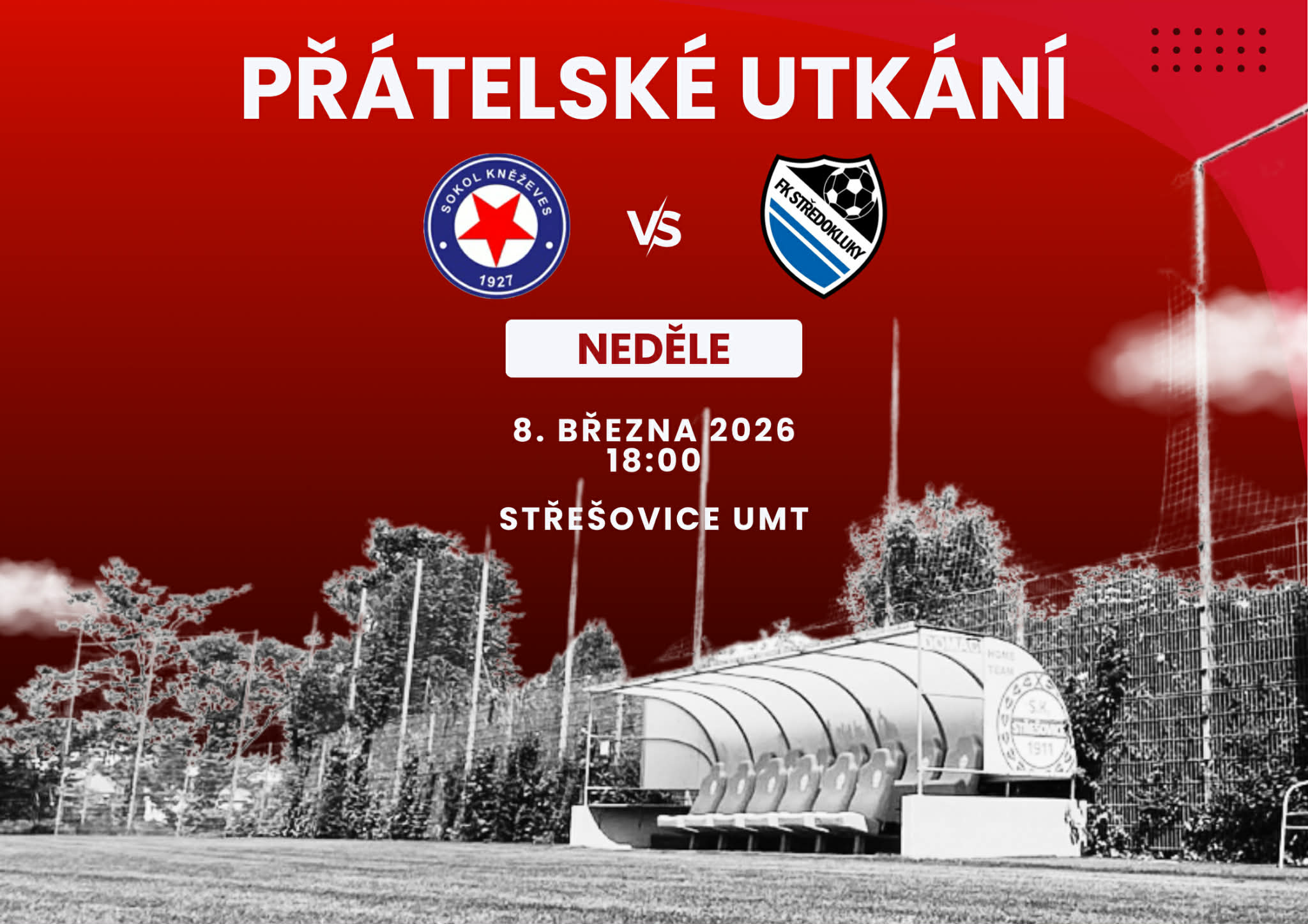 Přátelský zápas dvou rivalů Kněževsí a Středokluk se odehraje na UMT ve Sřešovicích 8. Března 2026 od 18:00